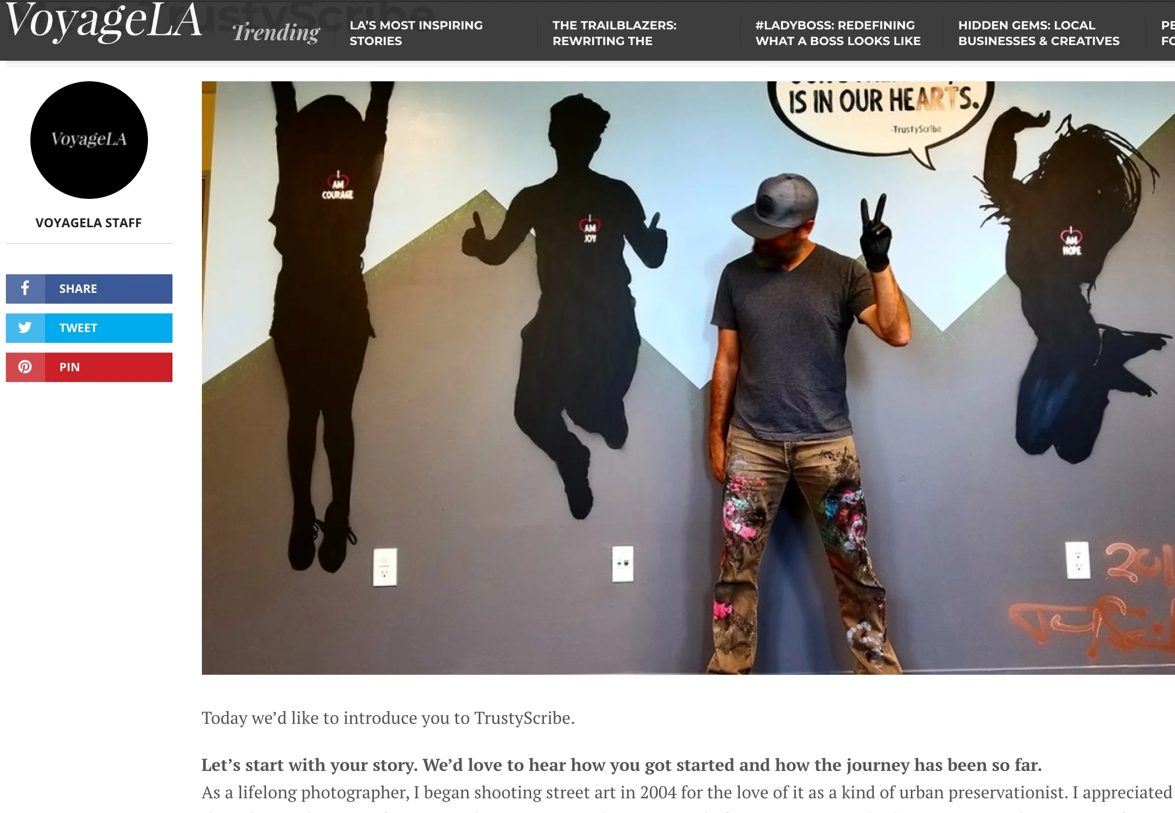 Marking the two year anniversary as a street artist, TrustyScribe is profiled in the popular LA magazine, VoyageLA.